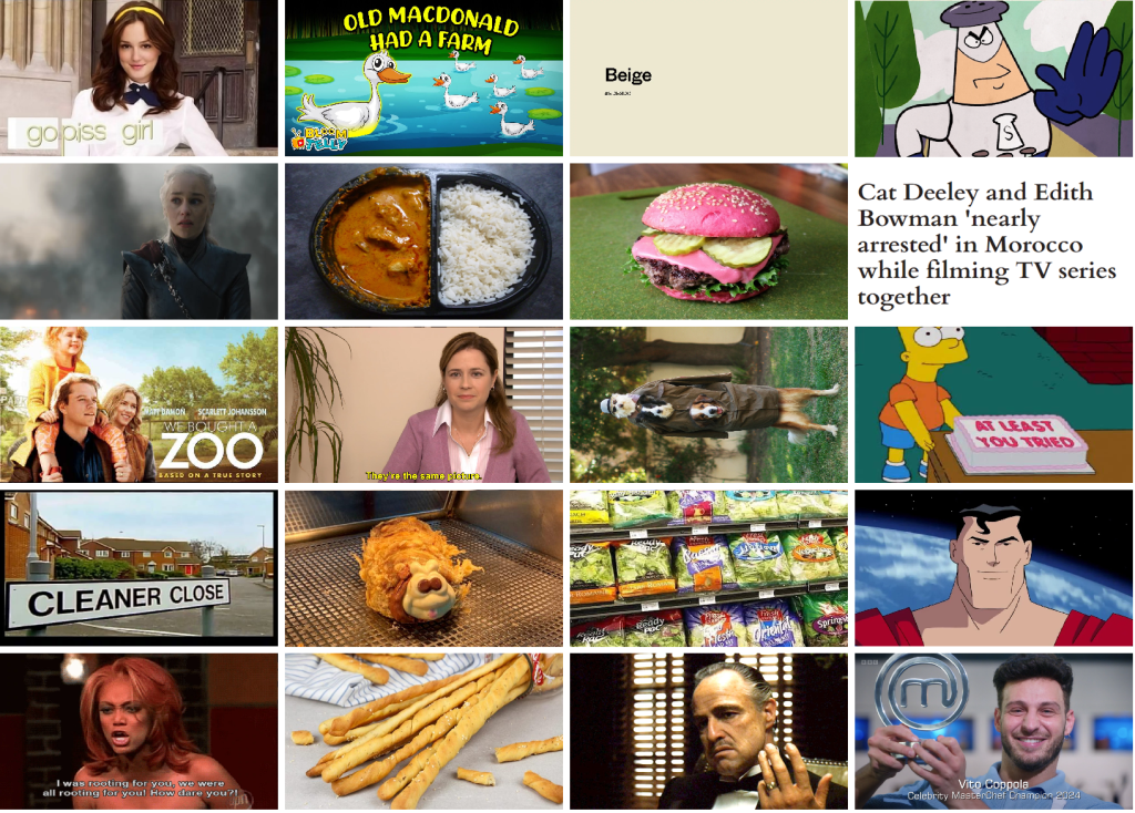 And so, we’ve made it to the end! You can have 5000 MasterChef Points if you can remember who each image represents BECAUSE GOD IF I CAN REMEMBER, IT’S BEEN 84 YEARS. (also Imgur kept deleting the elimination wall because their AI censor detects the top right image as a dick.)