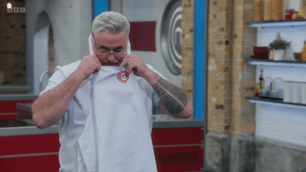 The first to face the pass was Martyn who was being pushed ever closer to the full ascension of his villain origin story as BOTH of the dishes he was cooking were being cooked by other contestants. This whole round was a bit of a multi-dish pile-up with the only one staying safely in their own lane being Michael while the other three all swerved across 4 lanes of traffic without indicating. At least with Martyn’s Sticky Toffee Pudding with a *GRITS TEETH* Lip-smackingly Gorgeous Butterscotch Sauce there’s like a 60% chance someone else is going to do one too, it’s a risk you have to take. I cannot imagine he thought in a million years he’d be having to cook a Smoked Haddock Risotto with Victoria breathing down his neck doing the same thing but slightly weirder and better