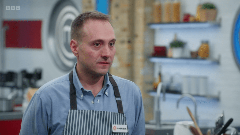 Back to our regularly scheduled pasta battle content, we have my new favourite contestant of all time, Gabriele. Why is he my favourite? It’s more to do with the next round, but also his beautiful wife dresses him up like the squeaky toy penguin from Toy Story and makes him cook for her