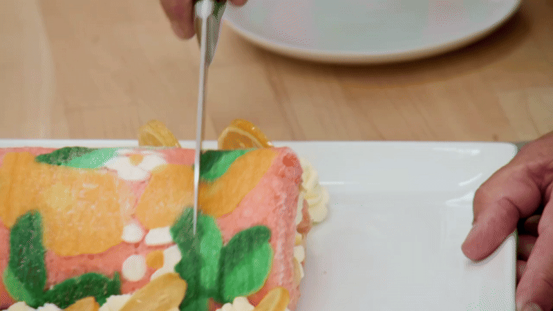 And lastly we have Nataliia who was giving her Swiss Roll an almost embroidered inlaid design of her favourite Ukrainian wildflowers and a filling of passionfruit and mango