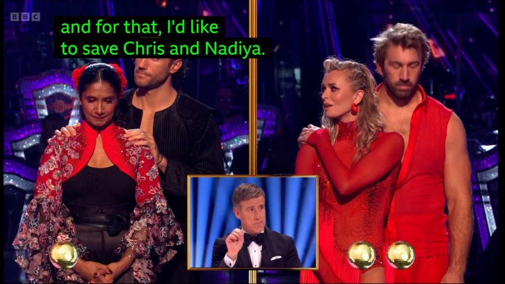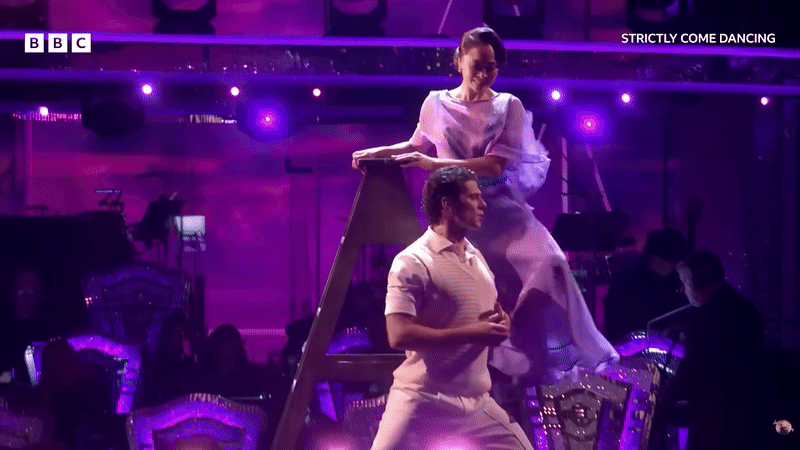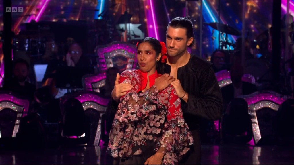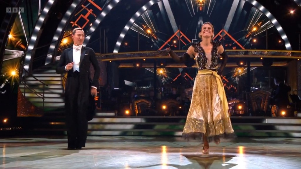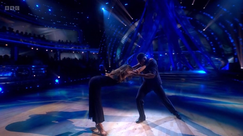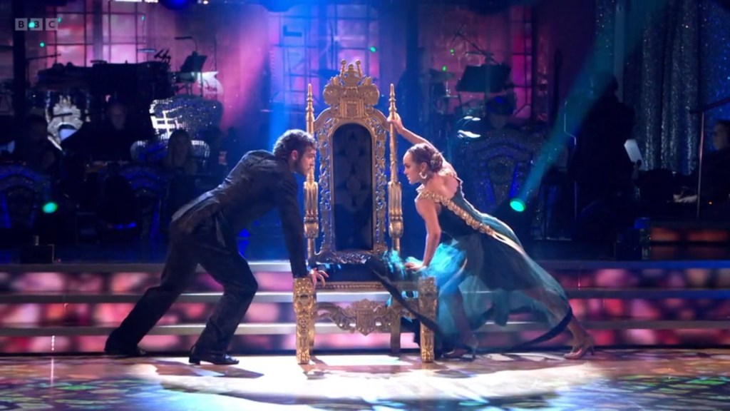 because the rest of it is a middlingly fine tango to Coldplay’s Vida la Viva of all things – a routine almost certainly planned before the series began just so that Strictly could be 3 months late to the Coldplay Kiss Cam Incident and they’d just throw it at whichever contestant looks the most like they listen to Coldplay