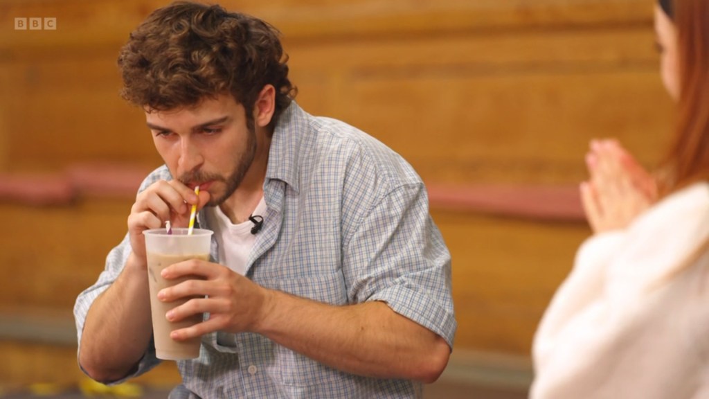 the whole thing being that they’ve given up on trying to make George seem interesting so we’ve pivoted wildly to VTs about Alexis (Hot and Weird Julian found dead in a ditch) as she introduced George to Utah Dirty Sodas, the sort of cursed food that could only come from a culture devoid of sex and hobbies – perfect for George!