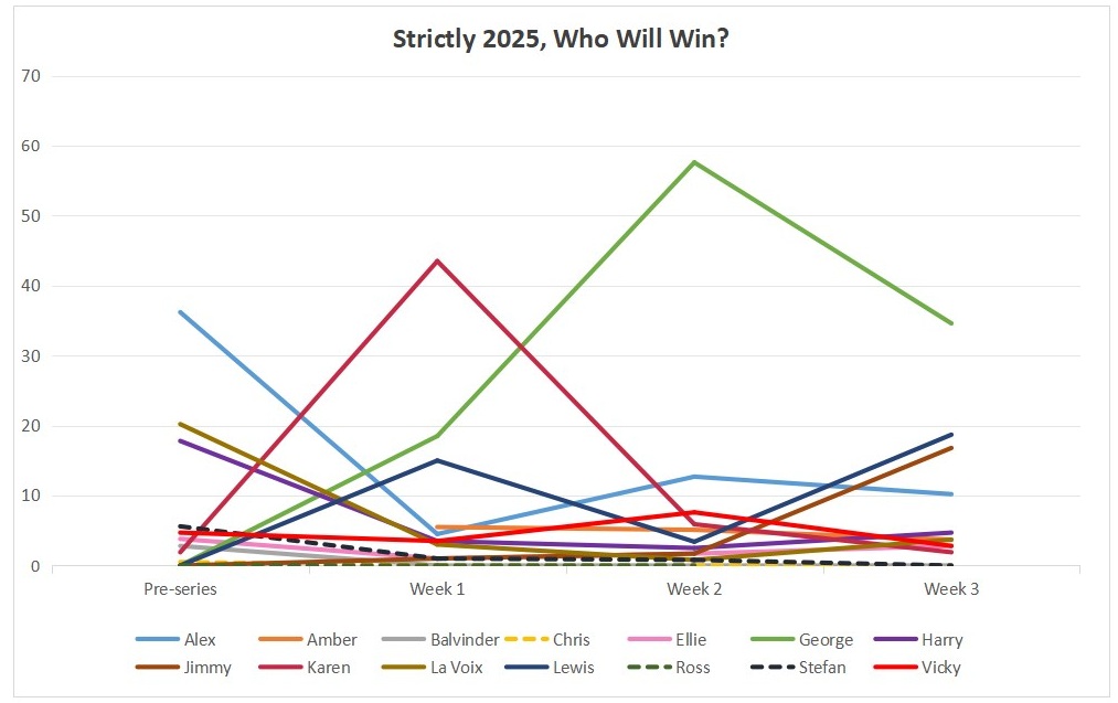 after the lowest ever average scoring Week One in Strictly history, I was quite excited for the pacing of this series. However, it seems the show took that the wrong way and has promptly course corrected at such speed I fear we’ve capsized with the highest average scoring Week 4 in Strictly History[citation needed?]. No doubt in part because the only dance that Anton scored lower than a 7 was La Voix dancing a Cha Cha Cha like a decorative lawn flamingo with a bad case of thrush
