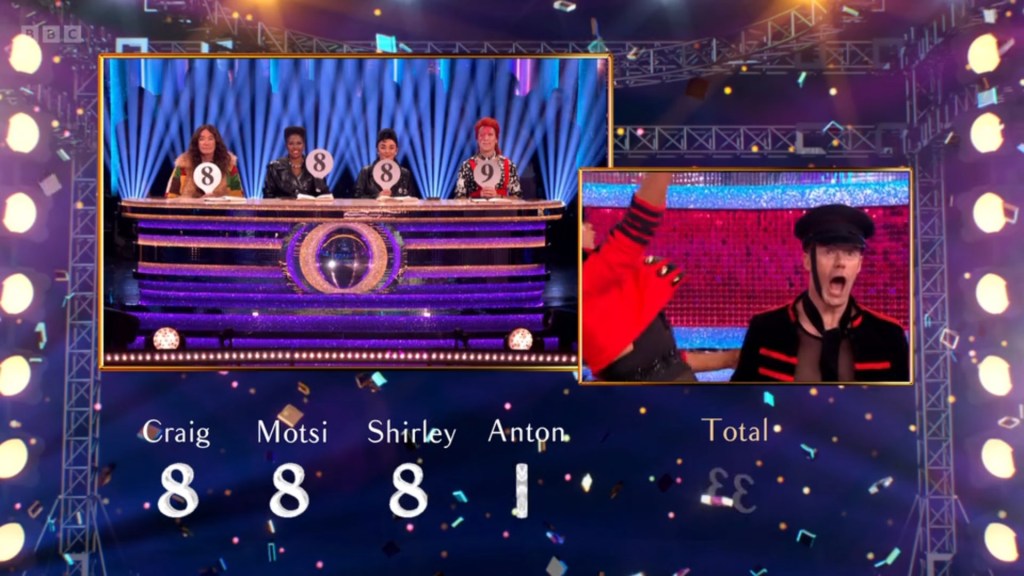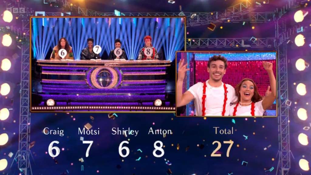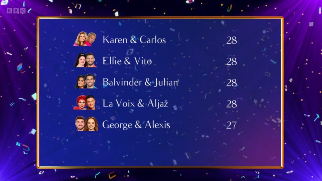 the most insane part of this isn’t somehow George bottoming out on an extremely ill-advised Jive (which endears him to me a little, I’ll be honest) but Harry and Karen not even dancing in the same hemisphere of an Argentine Tango and somehow getting 32