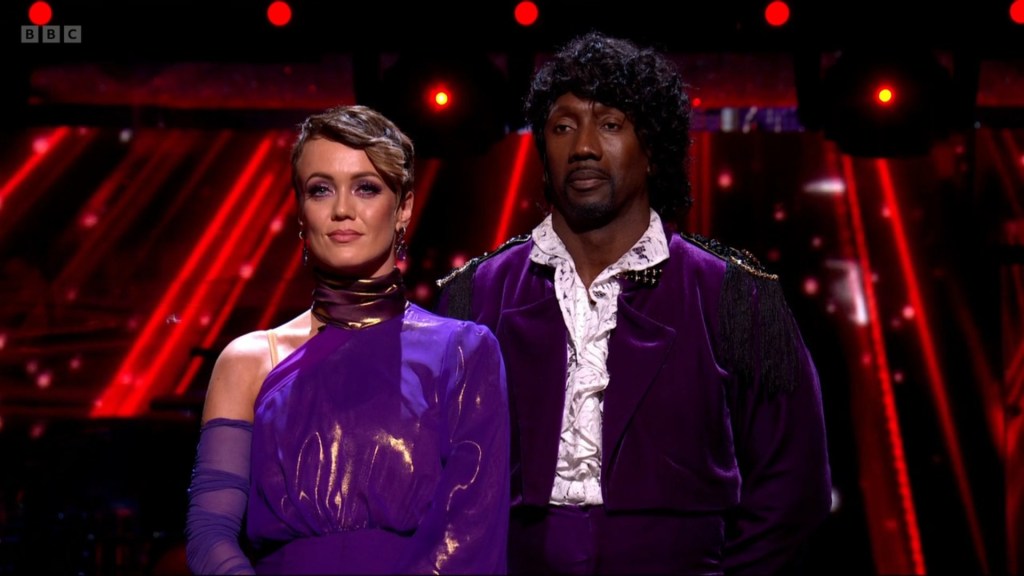 however, this American Smooth was a stinker of a routine – a rarity from Lauren. And I’m surprised they’d let it be styled so horrendously when you’re paying through the nose for licensing rights to Purple Rain – remember the X-Factor drama of them whipping it out for Ruth Lorenzo in a WEEK TWO sing-off in which she curb stomped The girlband named Girlband out of existence like a vengeful God? Peak TV. So god knows why Jimmy is having to balance 3/4 of a shih tzu on his head and Lauren is dressed like a Quality Street if it was your overbearing mother-in-law in 1984