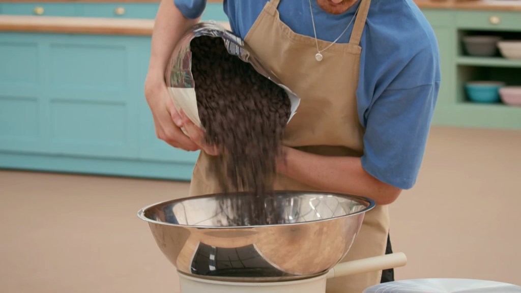I’m so mad about this – as much at Tom for sinking so much time and energy to such a pointless venture as the show for allowing it to get to a point where people who are, and I cannot stress this enough, HOMEBAKERS bringing in a good £100 of chocolate to make the sort of obscene structure that even has Benoit and Cherish side-eyeing a chef on the Professional series