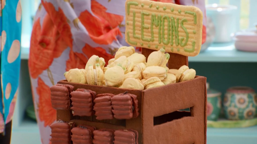 he’d also made by far the most impressive piece of macaron baking, having made the signage on his crate entirely out of macaron