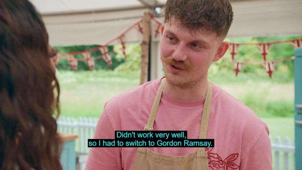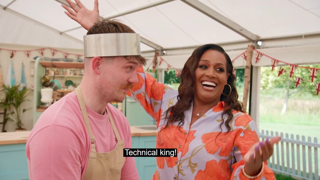 because there’s some logic to making a mousseline and a genoise if you stop to think about it. But sugarwork is such an exacting science that this was just setting everyone up to fail in a way that felt malicious and I wouldn’t have blamed Toby for bolting out of the tent after his what? third attempt at it?