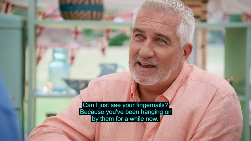 I have enjoyed this series – there’s been some real highlights in Iain, Nataliia, Jessika, Lesley and the brief time we knew Hasaan for. But the more this episode goes on, the more you realise we have strayed far to far from God’s light and we need to turn the show off and on again to go back to a time where someone could bake Jelly Tots into bread, not get eliminated and go on to be a semi-finalist