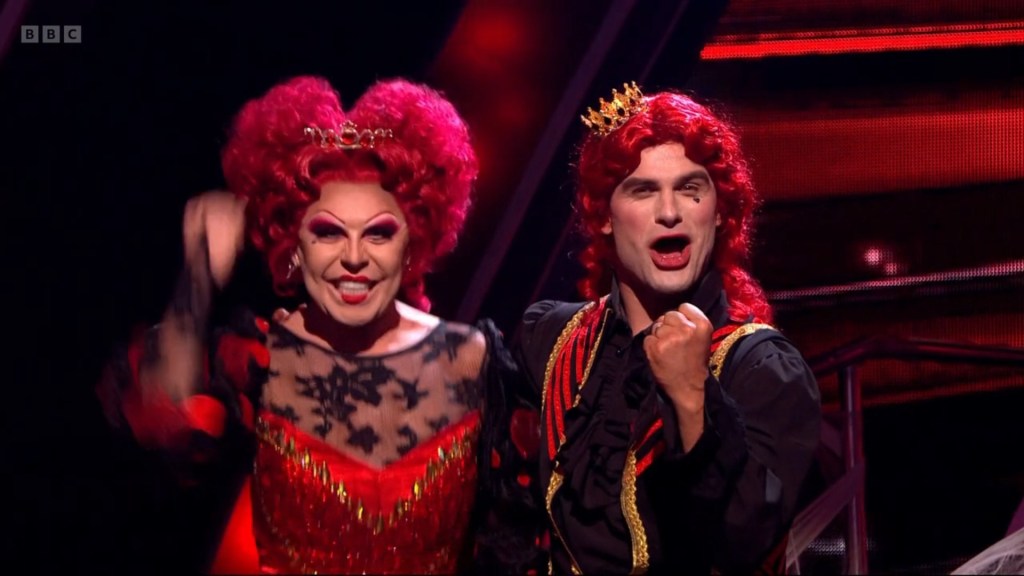 I can’t believe that La Voix actually got out-faffed this week, but for some reason Aljaz has chosen Movies and Halloween Weeks of all weeks to choreograph entirely sincere and straight-faced routines. Or as straight-faced as a drag queen baring down on you like she’s just clocked an unembellished H&M dress