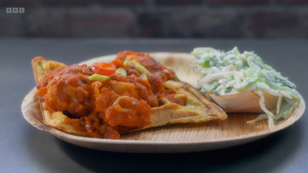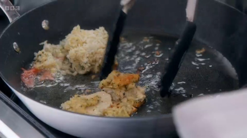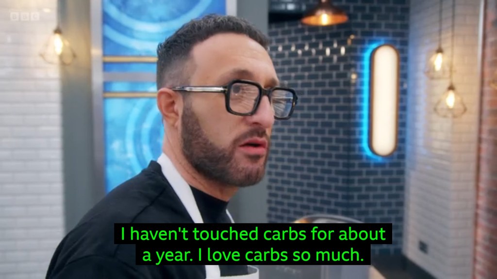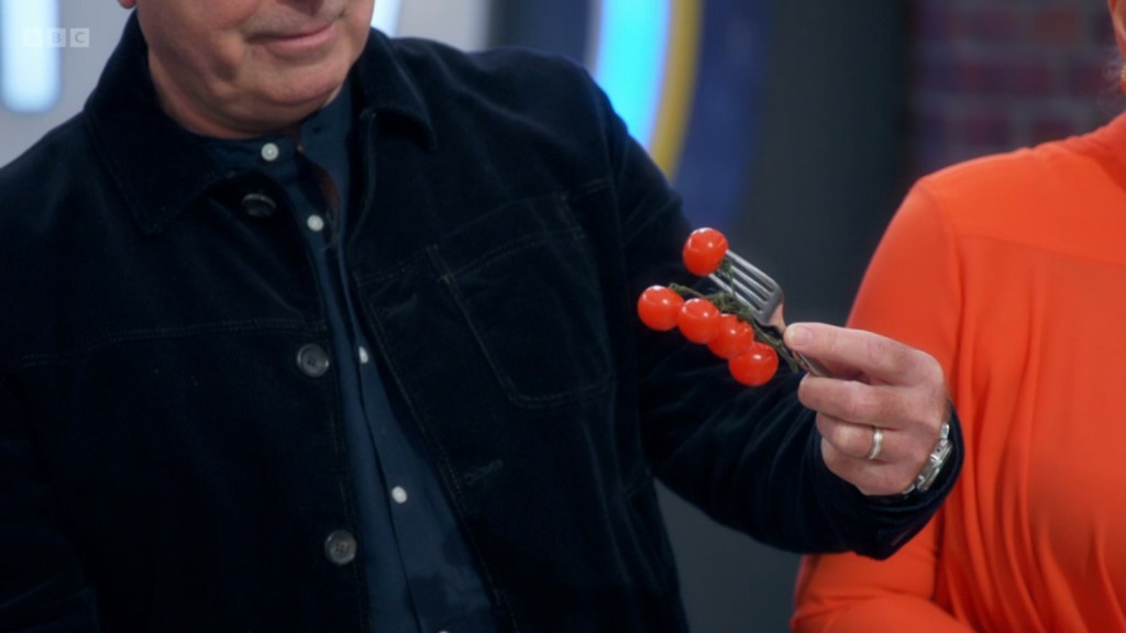 but with Antony Costa laying claim to a dragon’s hoard of cherry tomatoes, Gaz had to resort to attempting to make a raita out of aquafaba that ultimately didn’t really materialise. However, the bigger talking point is John Torode’s pronunciation of “Aquafaba” – it’s not even an accent thing! He fully says “Aquaticfaba” the entire time and NOBODY corrects him, Grace Dent just stands there letting him say it wrong. But I too would be relieved someone else was embarrassing themself if I’d lost an earring while in the middle of a conversation with a drag queen