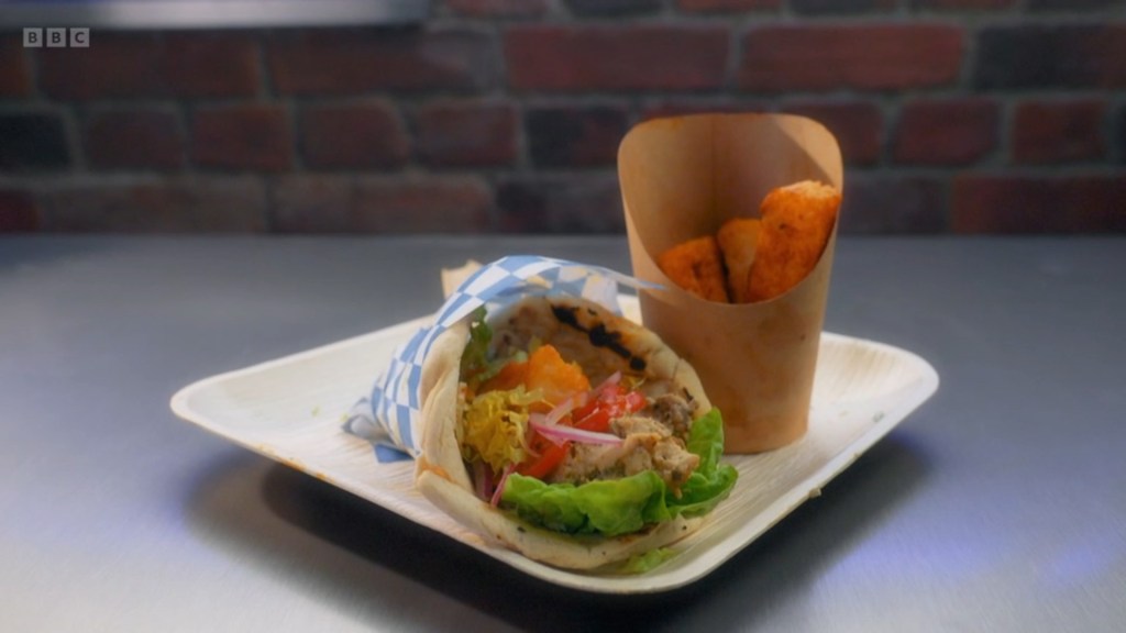 with maybe an ounce more effort she could’ve extrapolated to Coronation (Street) Chicken but I think trying to successfully fold two gyros was enough mental gymnastics for her