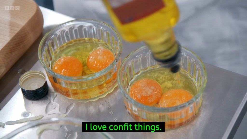 the confit garlic worked very well! The confit egg yolk that she’d learned how to do on the commute to Birmingham while scrolling through instagram significantly less so