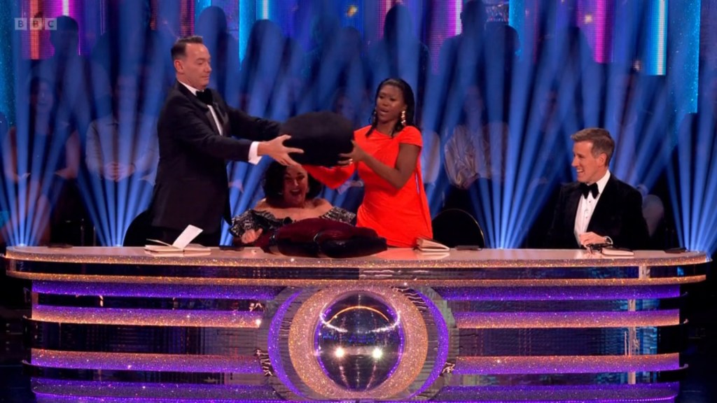 and a highly underrated part of these shenanigans is the judges reactions to the chaos as they try and work out a marking scheme on the fly – lead entirely by Motsi who has some experience with Microwaveable Ballroom Dancing, which is why she momentarily got to sit in the Officially Unofficial Head Judge Seat, but unfortunately forgot her booster seat so did look like a child insisting upon sitting at the adult’s table at Christmas