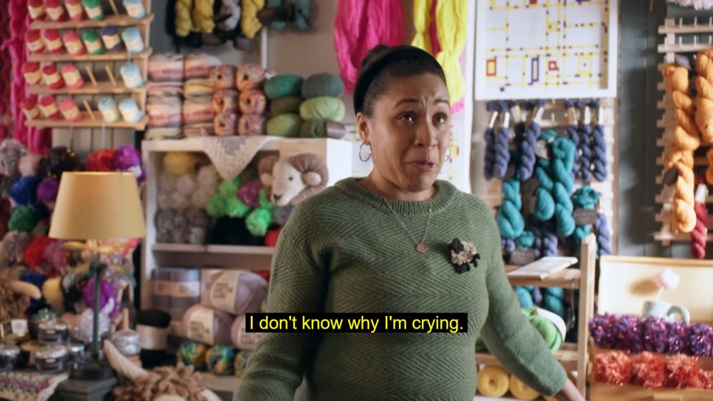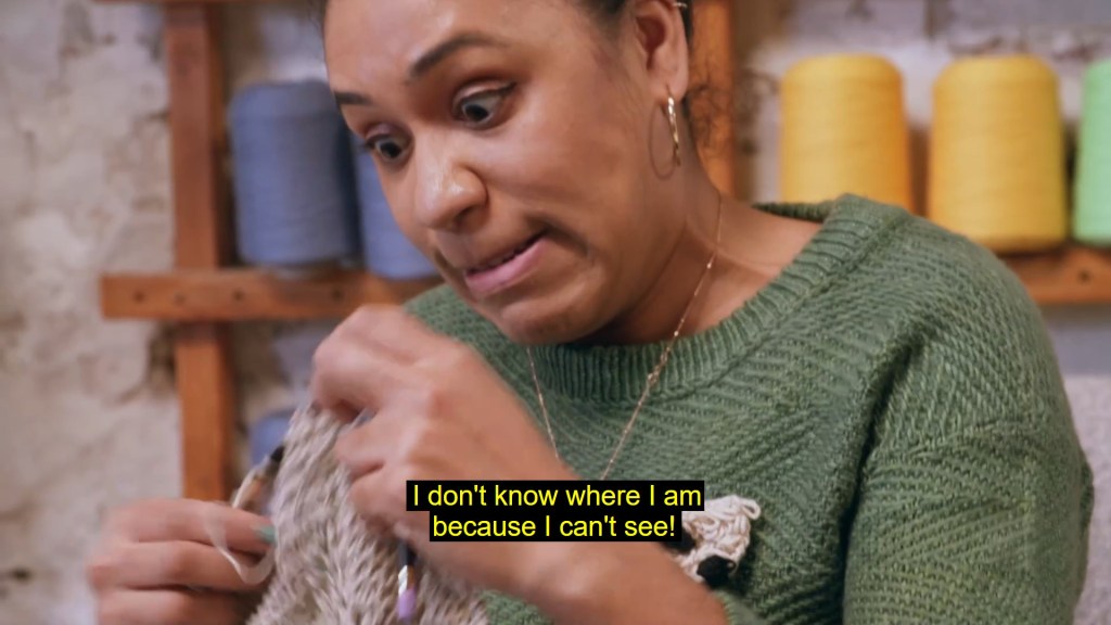 and instead he’s got to knit for the very specific tastes of Di Gilpin who was walking around this episode looking like a kiting accident