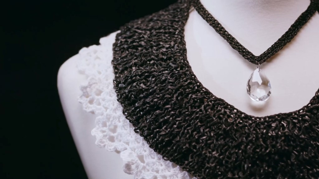for their solo challenge the knitters and crocheters-by-gunpoint were having to make two pieces of Statement Jewellery consisting of a necklace and matching cuff. We were also told that they had to use some sort of innovative material but I’m not sure if the contestants were told that considering Isaac, Ailsa and Lydia all seemed to just be using yarn and beads? It came across as very much tacked onto the end in post because Holger had shown up with a ball of shredded binbags