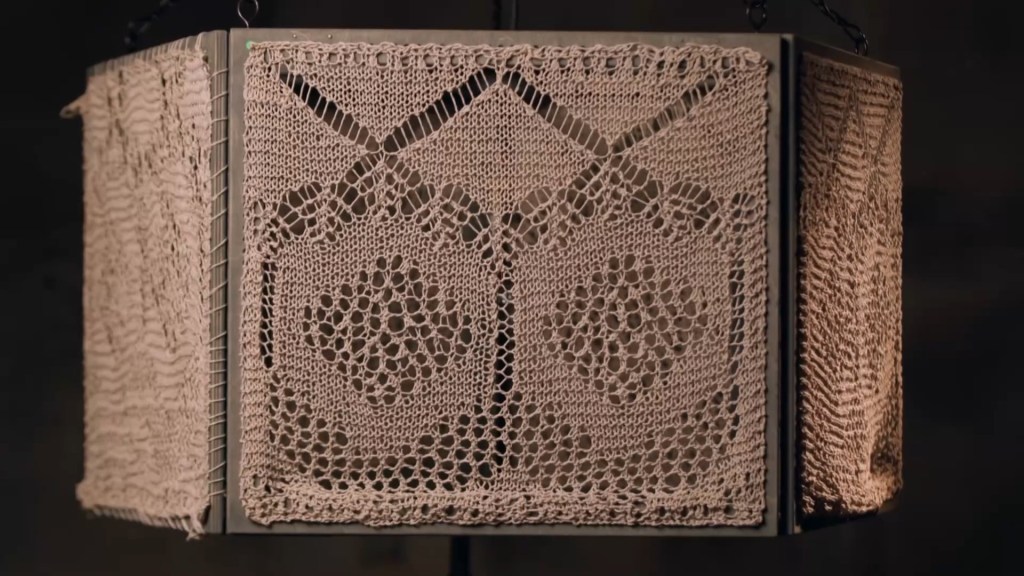 for this week the knitters are having a Lace Off with each of them responsible for creating a lace panel for Tom Daley’s Ugly Bespoke Light Fitting