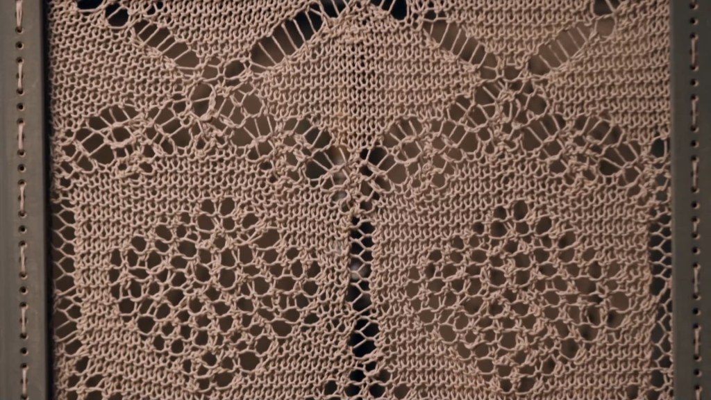 somewhere along the way Lydia had dropped a stitch – as someone who has only just started to ponder the complexities of knitting, crochet and forbidden macrame, I don’t even know how you’d correct that so I don’t blame her for needing to go and vent in the crying-cum-lace-steaming shed extension
