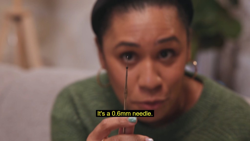 The runaway winner of this particular challenge was Lydia, who was driving herself slowly insane with a 0.6mm needle that the camera couldn’t even focus on properly