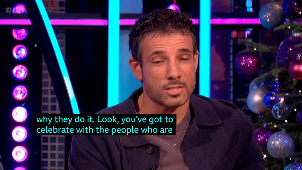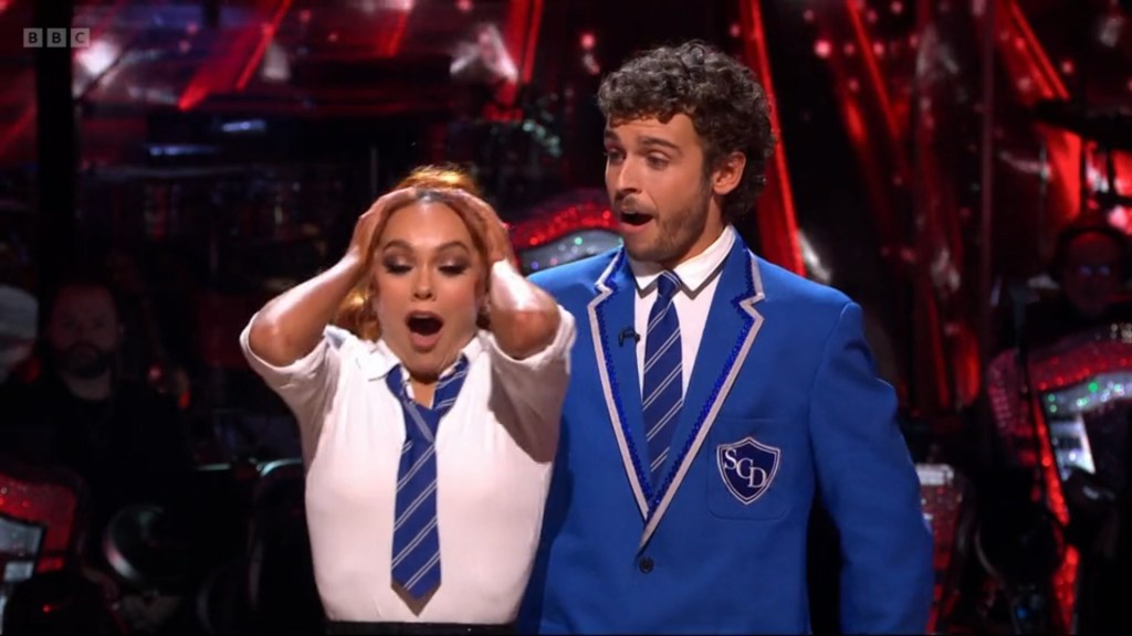 I feel like she and Carlos are the only ones that have looked at it from an aesthetic view point – you’ve gotta look GOOD with that glitterball. George and Alexis opting for the dull grey Paso costume? Again, weird choice. It’s like a concerted effort to scupper George’s chances and George is somehow in on it too! He got that Radio 1 deal and immediately dipped