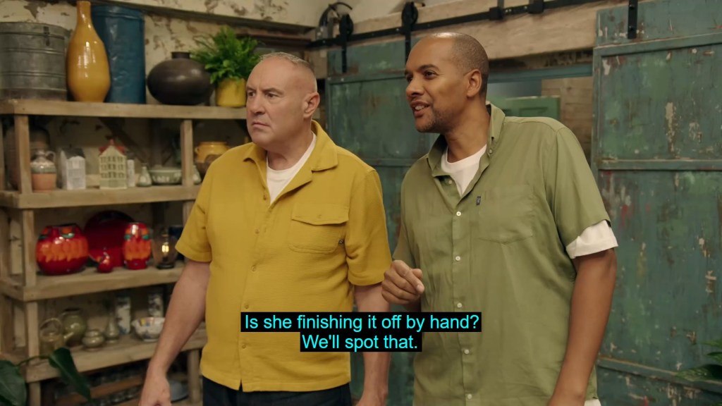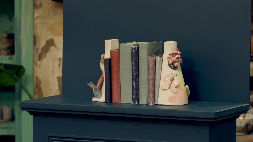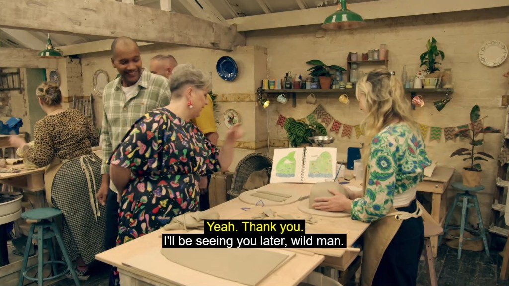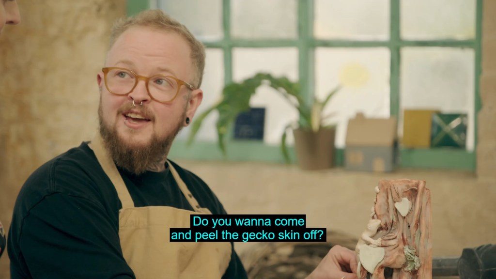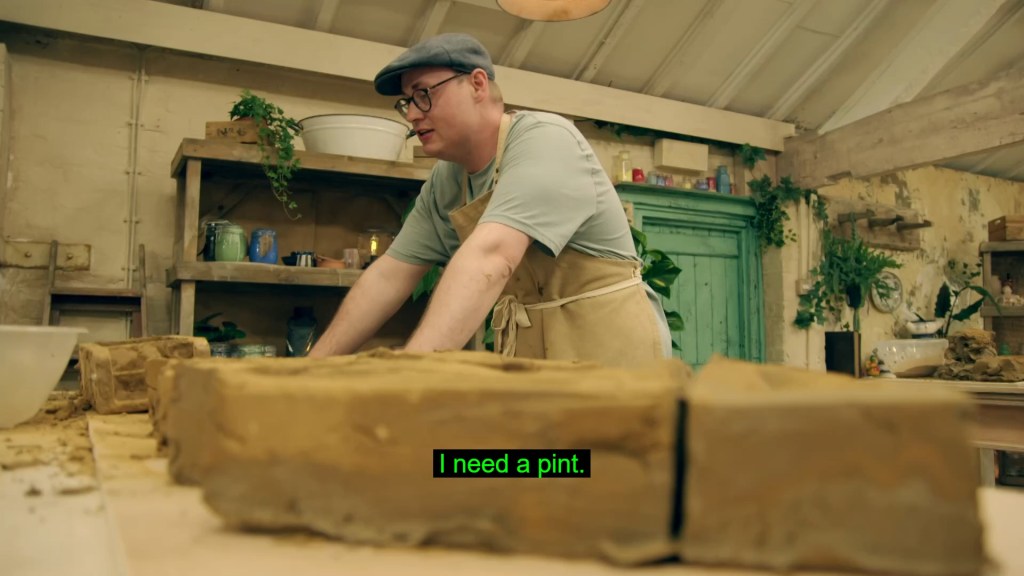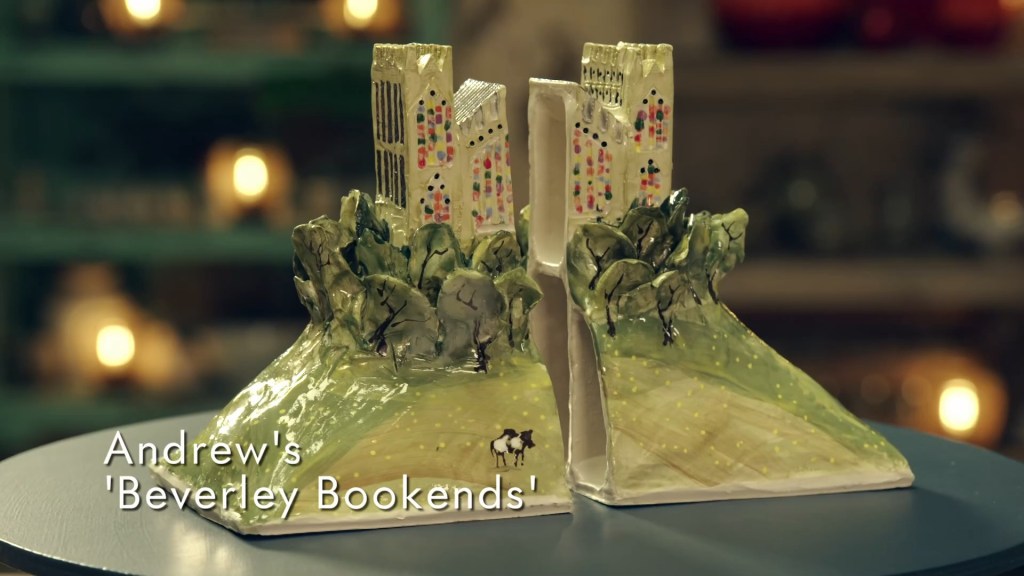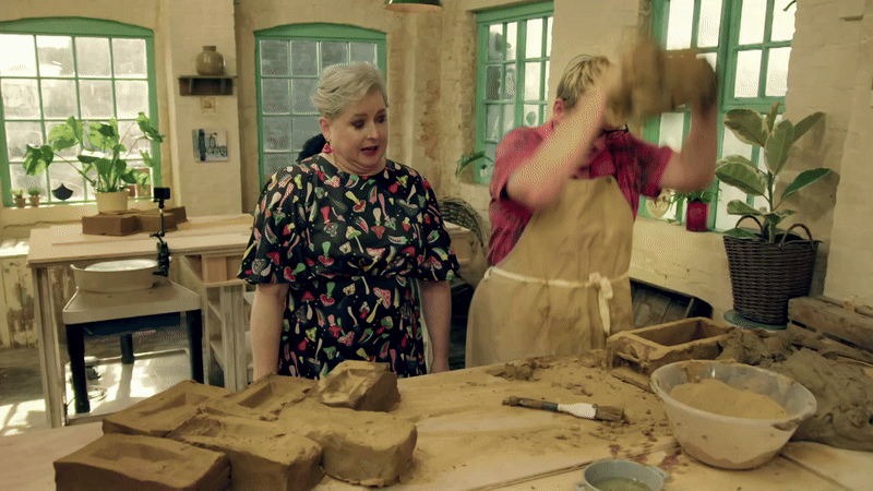 With the pottery wheel behind them, it was on to Slab Week, which is what I call the period of time between Christmas and New Year, as the potters were tasked with slab building a pair of bookends. A task hinted at in the intro by Siobhan and her butch lesbian twin, Sinead, who is literally just Bill pulling a Clarke Kent