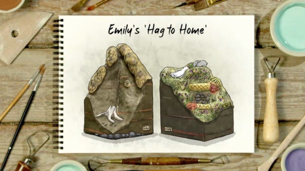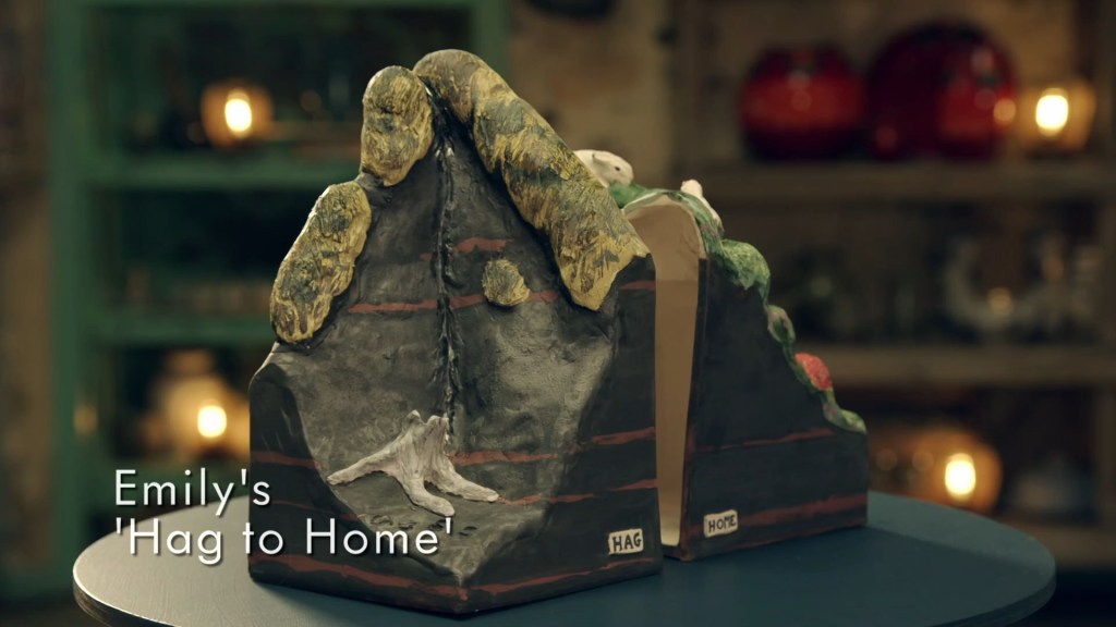 the only thing is that it maybe didn’t feel like the focus was on the slab built side of things? And maybe she could’ve built the ground up and done a sort of cross section of a treasure trove of Viking gold just out of reach of the detectorist? But I loved the humour of the hand reaching out the other side. There was also some concern on the slab building for Bill and how his seemed to be more of a sculpture