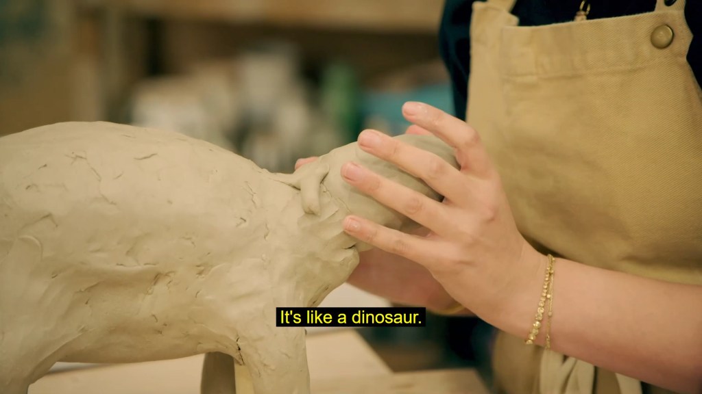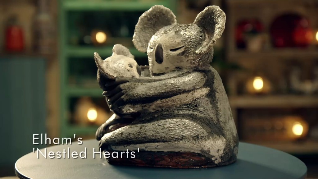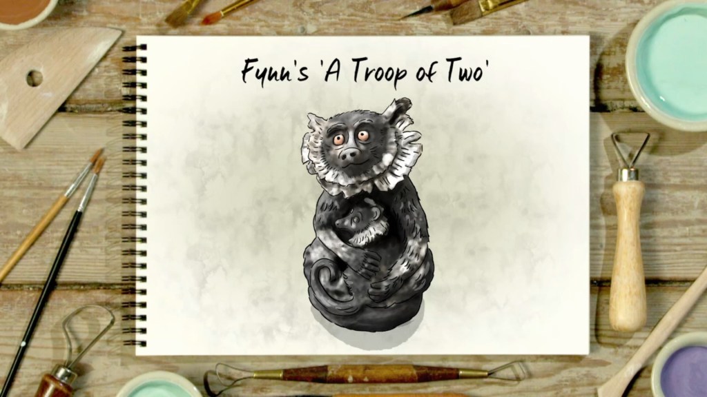 it’s not my personal favourite of the sculptures, I think it’s in part that the pose is a little twee and unnatural? It’s very Hallmark, which is fine and certainly has its audience. I just preferred the more rugged mammalian sculptures. I think she was completely right not to carve in the fur texture because it would’ve busied up the sculpture too much whereas something like Fynn’s black and white lemur needed him to go really ham on the texture and naturally with Fynn, that was a grand success
