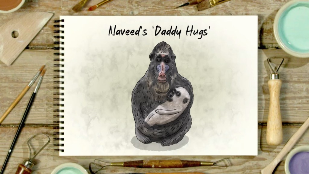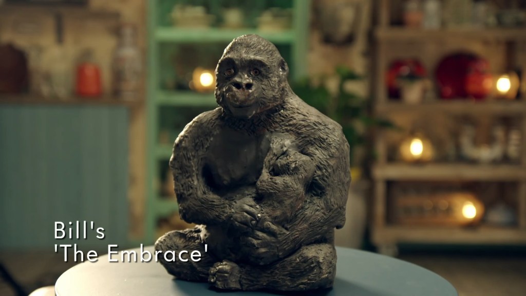 which they then implied was Bill doing a Silver-backed Gorilla and Naveed sculpting Bill cradling his flat cap