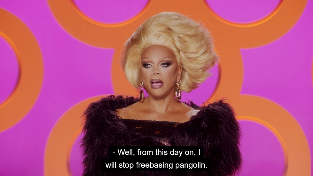 that got RuPaul to finally pledge her end of snorting fresh pangolin scales in the Drag Race restrooms