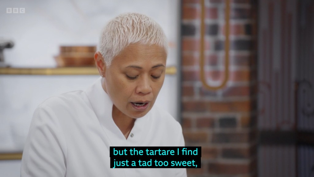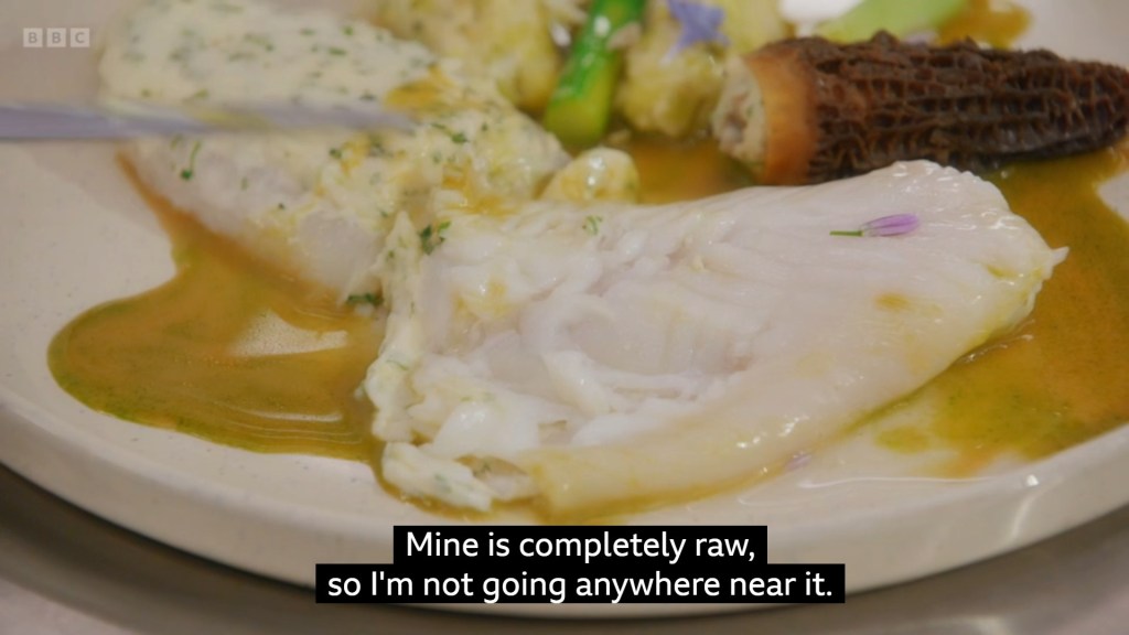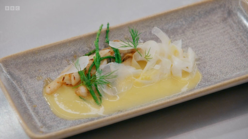 the only real issues were the fact she’d overcooked the Razor Clams, which she also hadn’t rinsed off, and had a Beurre Blanc sauce that was watered down and lacking flavour. But the judges were just relieved that she’d used the correct bits of the Razor Clams – and it’s a wonder to imagine that anyone would use the wrong bits because really you just have to remove the parts that make it look like an eldritch abomination from the deepest fathoms of the ocean