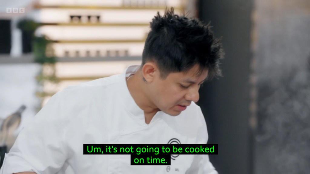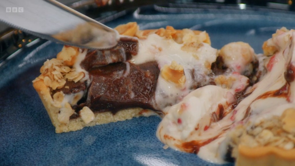 his near failure to melt was luckily saved by the judges dropping hints with all the subtlety of an episode of Blue’s Clues and he managed to get it out in time with a perfect ooze in the middle