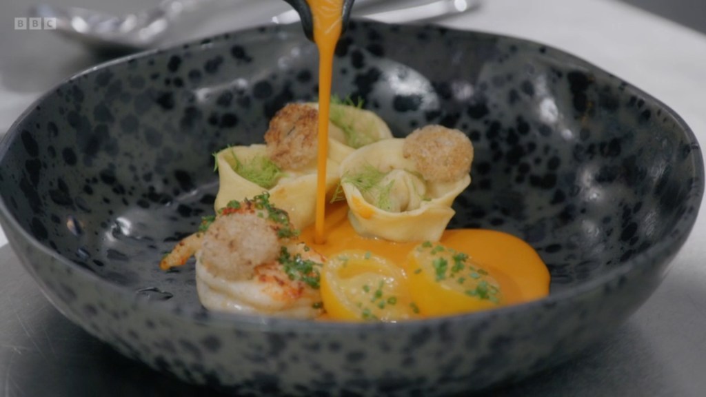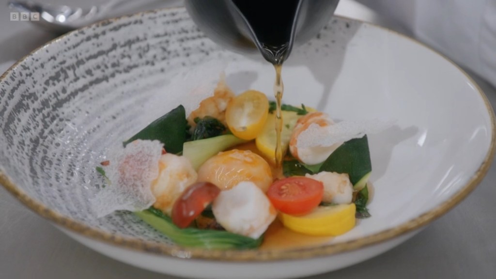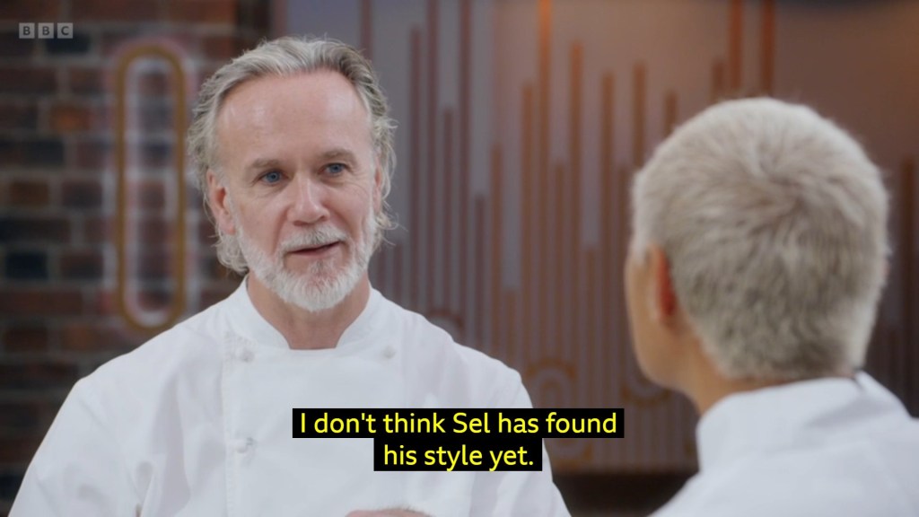 my favourite critiques on this show is when they just say things for the sake of saying things. Marcus was less keen on the dish, thinking the pale ale overpowered the prawny goodness and in private surmised that Sel hadn’t found his style yet