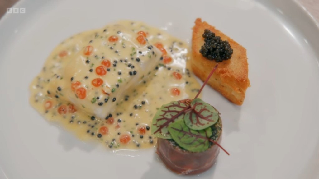 In order to decide who was going to be eliminated (or not…) the quarterfinalists had to cook a two course menu for Jimi Famurewa, Leyla Kazim and member of the ever dwindling TV-safe royal adjacents, Tom Parker Bowles