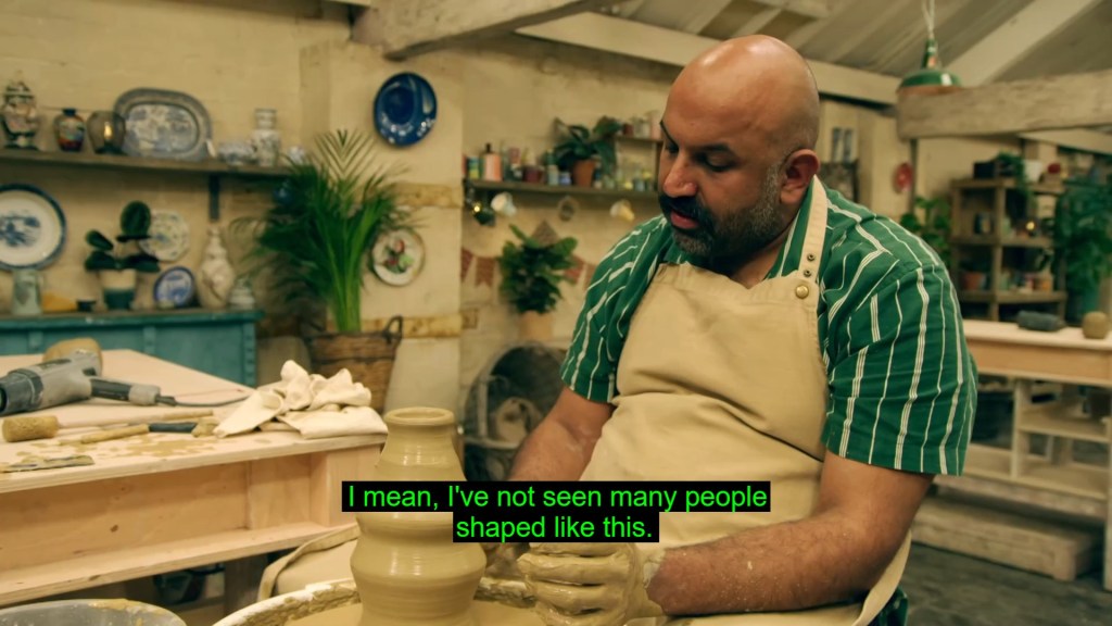 and maybe as someone with cereal bowl blindness (a portion is what now?) I’m not the best judge of quantities but it didn’t seem like many of the potters had used *that much* clay? Naveed however… I look at Naveed’s and think “Yeah, that’s a 20kg turkey that feeds a family of four for at least a week and a half”