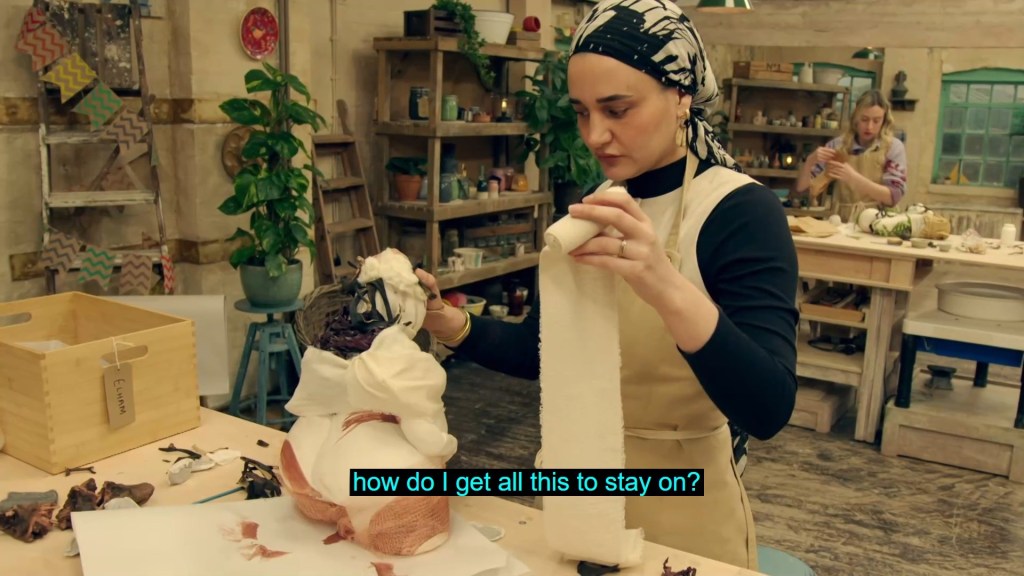 I do think Kayleigh and Naveed both had sculptures that, at least in the edit, came a lot less emotionally loaded and then both had either a technical issue or the judges were able to delicately question its adherence to the brief. So Kayleigh and Naveed fall just before the semi-final