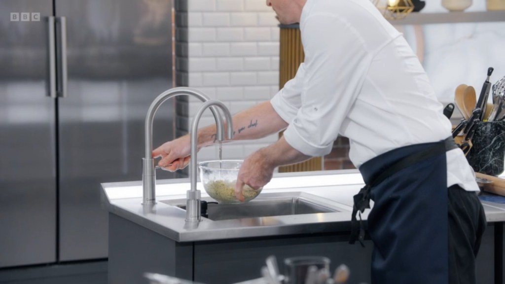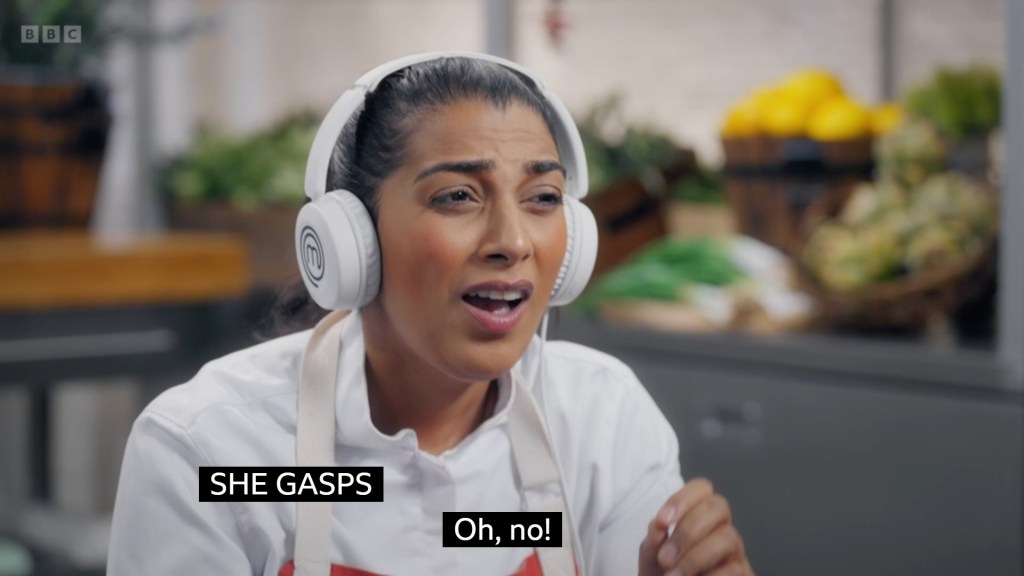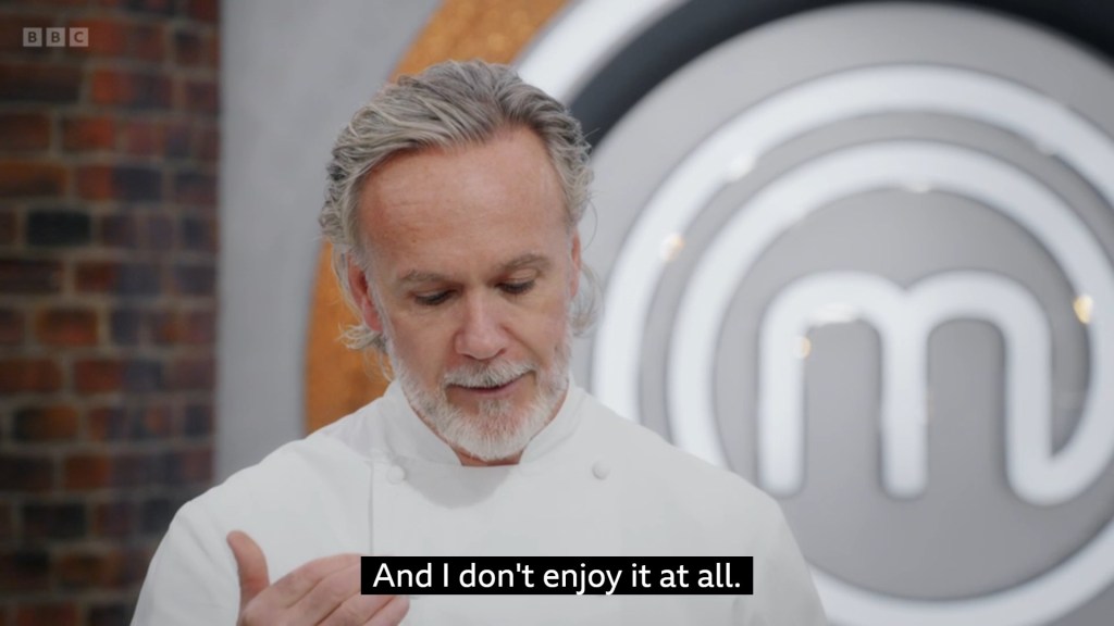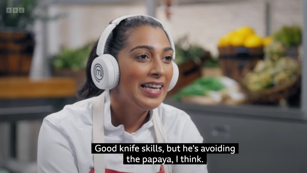 the theme of Tom’s Skills Test was that he was more of a chatter than a cooker, with Monica having to remind him that this was a cooking competition quite regularly