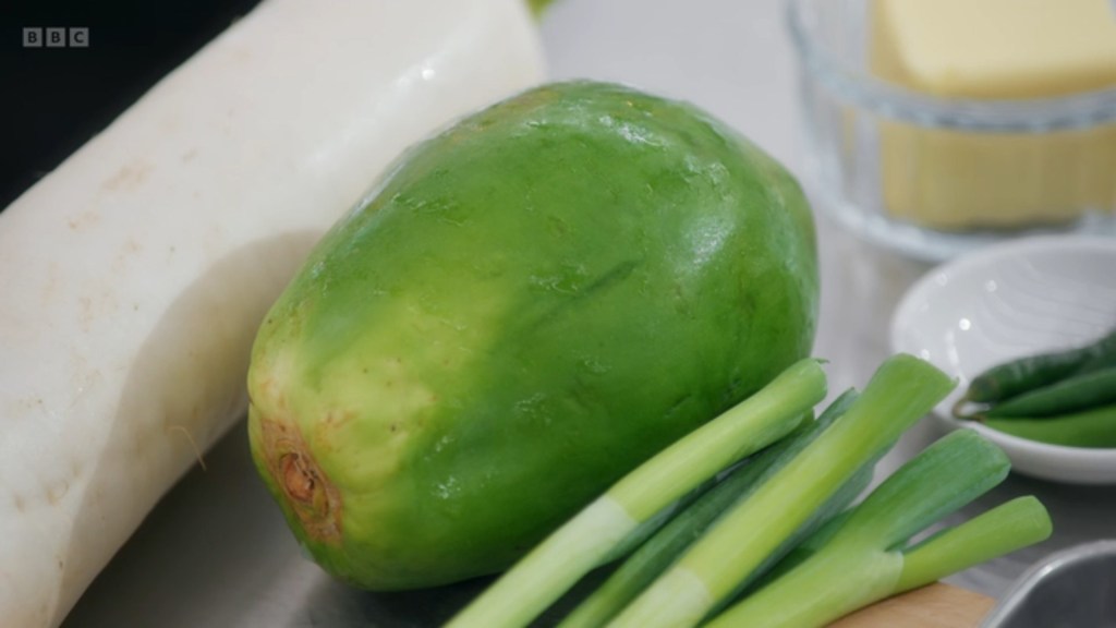 both of them did fairly well in the challenge – Ben was unnerved by the papaya and doing everything in his power not to make eye contact with it