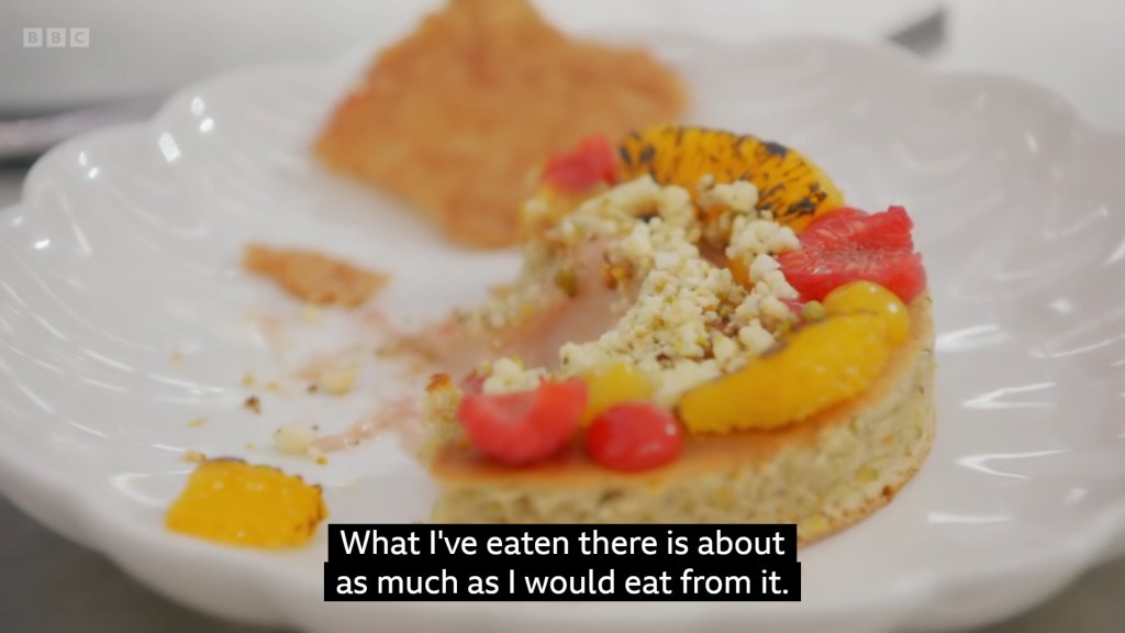 do I think if someone made this on Bake Off as an actual cake it would be nice? Yeah, and I think Jasmine did make it like 5 times (I’m still bitter) but as a dessert on MasterChef I just… can’t understand what Tom thought this was? It’s like a collection of just… things the bakery handed you when you went for a wedding cake tasting. Monica was very kind about it, Matt and Marcus however hated it as much as I did