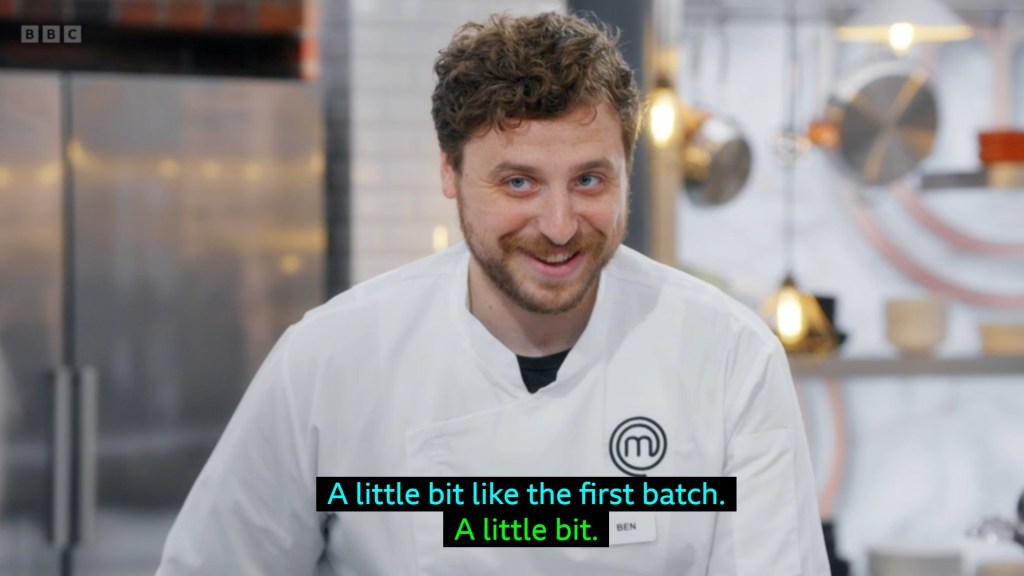 the chefs taking on this particularly test were Polly and Ben, who are surprisingly not the protagonists of a Ladybird book series from the 1950s, although Polly does look a little bit like she might have bullied you with money in 1950