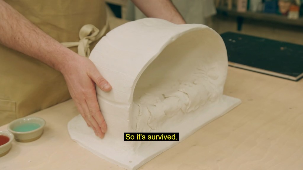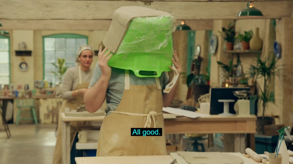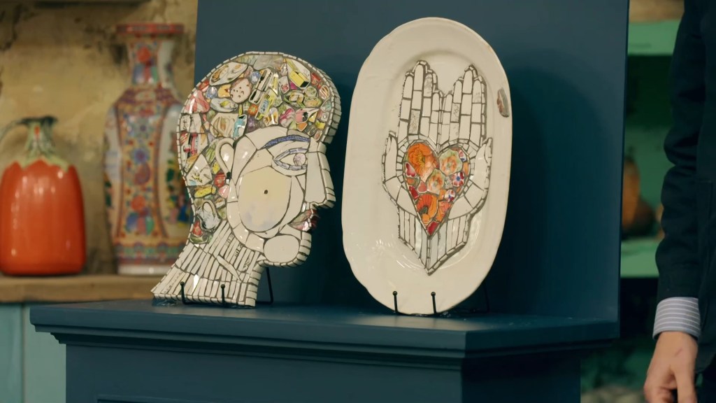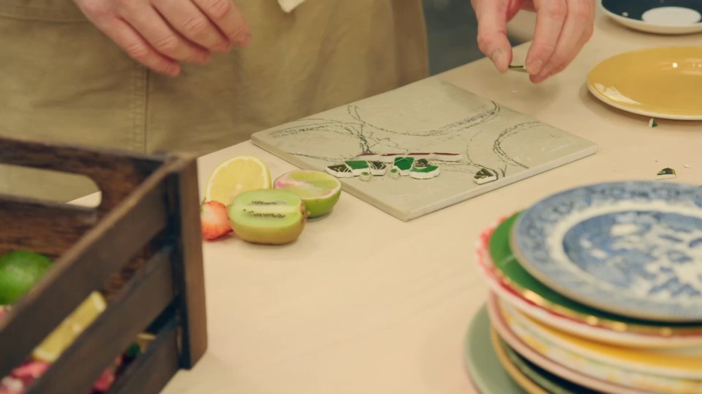 the challenge being only tangentially related to pottery, with the potters having to break up plates in order to make a mosaic tile, somewhat in the style of Cleo’s own works