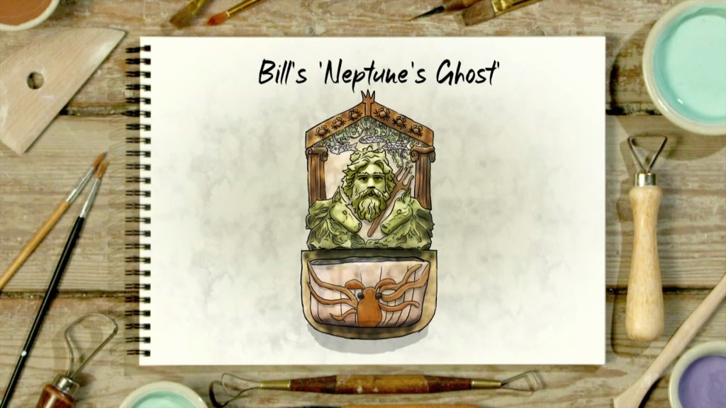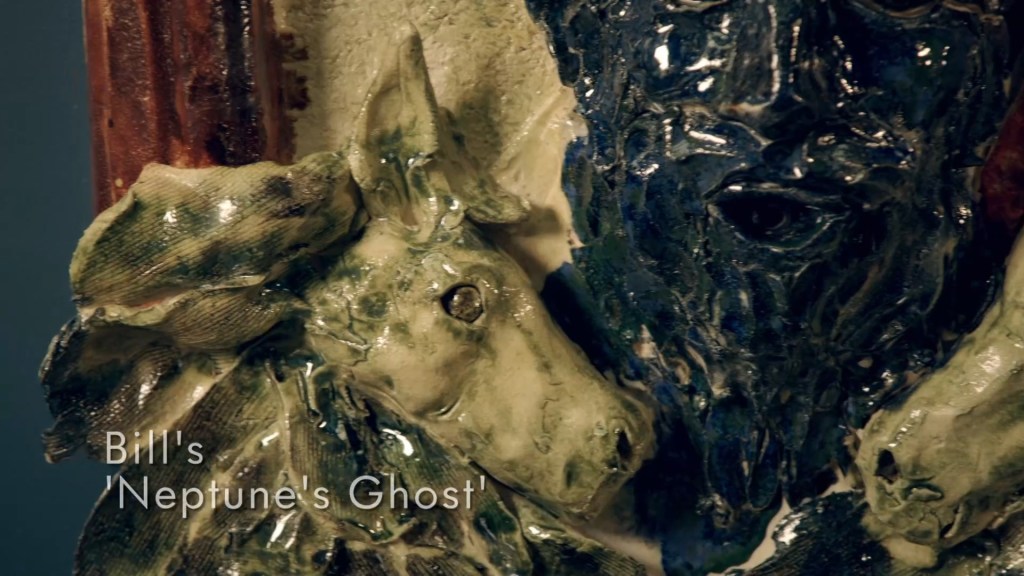an effect that the judges were looking to be achieved more through glazes than combustion. Speaking of the glazes, I was really worried for Bill because every time they cut to him he was just slathering more and more colours onto the face of Neptune