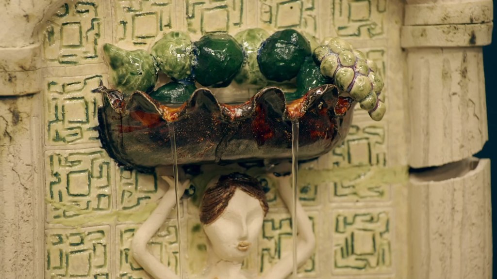 I do think it struggles to read coherently on TV because the camera sort of flattens the 3D of it all but it’s creative, well built and had a very good control of the glazes – the effect he got in the basin is absolutely spectacular