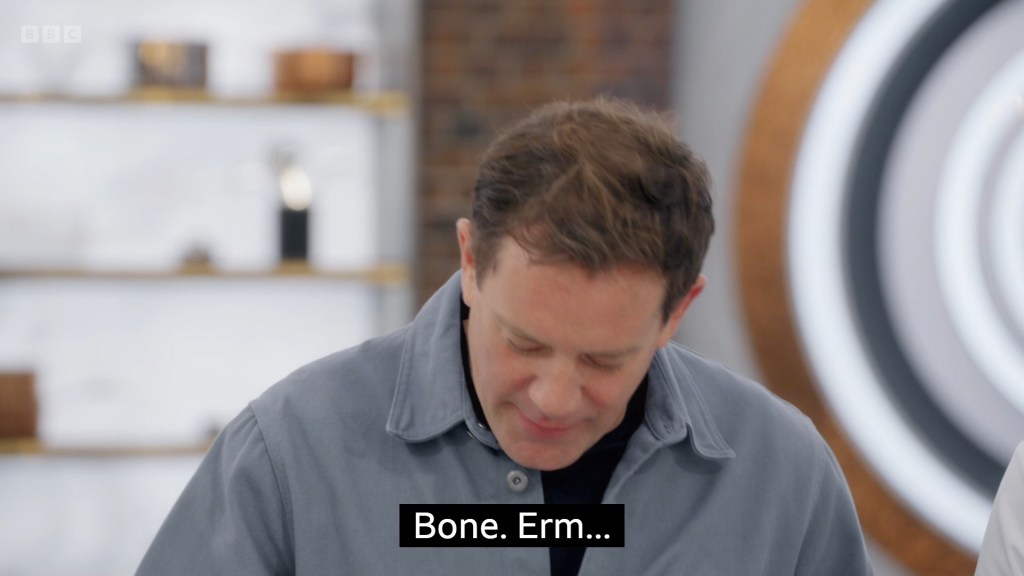 I think I say this every year because it inevitably happens to someone, but this feels like a very finale-coded dish and I worry she’s jumped the gun a bit? Because I do think Caroline is too humble to assume she’s going to make the finale – even when casually name dropping George Lucas she still has the demeanour of an 18th century Danish milkmaid who’s just happy if you pay her favourite cow a compliment