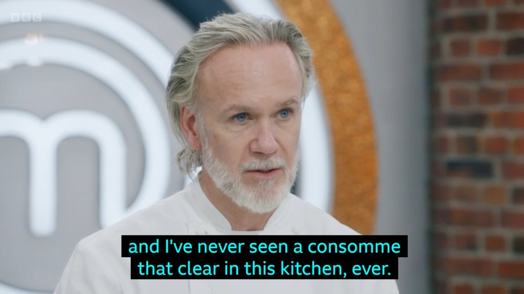 it is an outrageously good dish, she’s going to be an absolute force to be reckoned with in this competition after whipping out the best consomme Marcus has ever seen off the top of her head