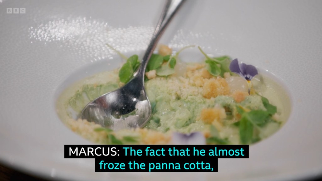 it was not a very successful episode for desserts with Giuseppe making a Basil Panna Cotta in the most chaotic manner he could think of and setting the blast chiller to Antarctic summer temperatures