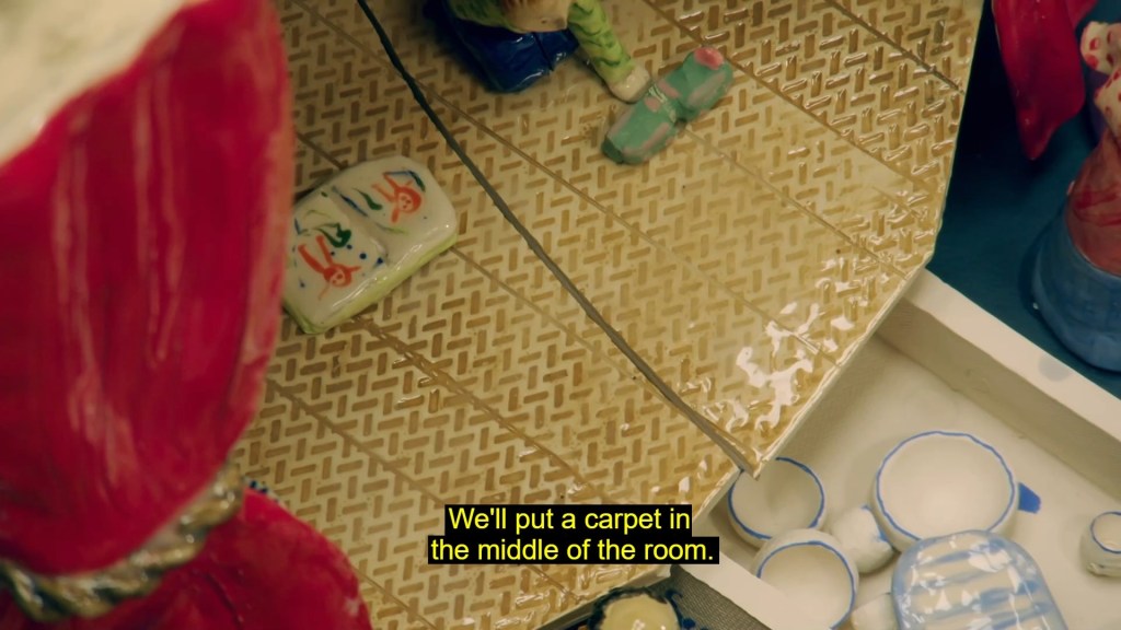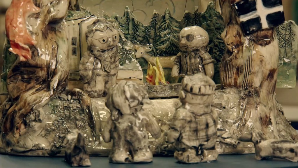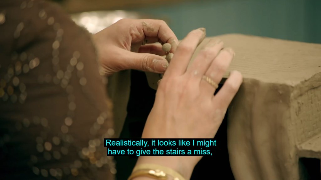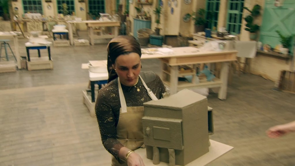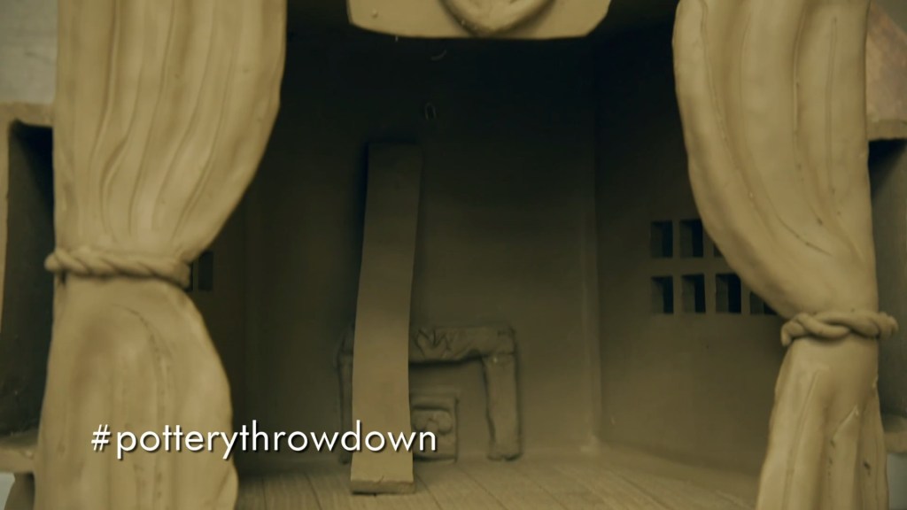 as part of the brief the potters needed at least 6 moveable pieces and changeable scenery which does give the impression that what the judges actually wanted was a ceramic dollhouse and I think maybe the brief could’ve been better communicated to the potters because they ended up with some impractically large piece. Like girl, where is this going?