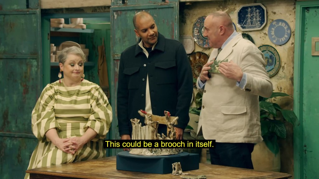 and very much going for the bonus points earned from making a bunch of small little critters. I wish the potters had been less caged in by the need for it to be a personal tableau – I get why, it’s a TV show and a TV show demands storylines but I there might have been more diversity if they’d been given free reign. I don’t mind the occasional Personal Piece challenge but they do begin to merge into one and this series in particular has felt like we’re witnessing an art therapy session with A LOT of overly personal soul bearing. Sometimes I think I begin to know too much about these people and a little more mystique wouldn’t go amiss.