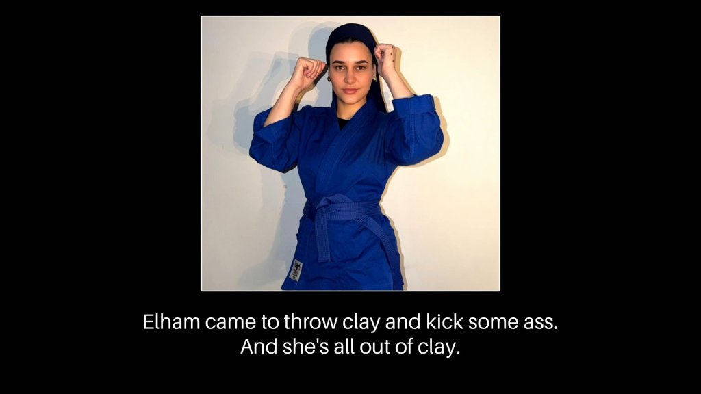 the effect is gained by expanding the bulbousness of the vase after putting on and drying the coloured glaze and sodium silicate solution – meaning the hardest part of the whole thing was resisting touching the outside of the vessel as you were doing it, illustrated perfectly by Elham and Angharad’s Claws of Frustration