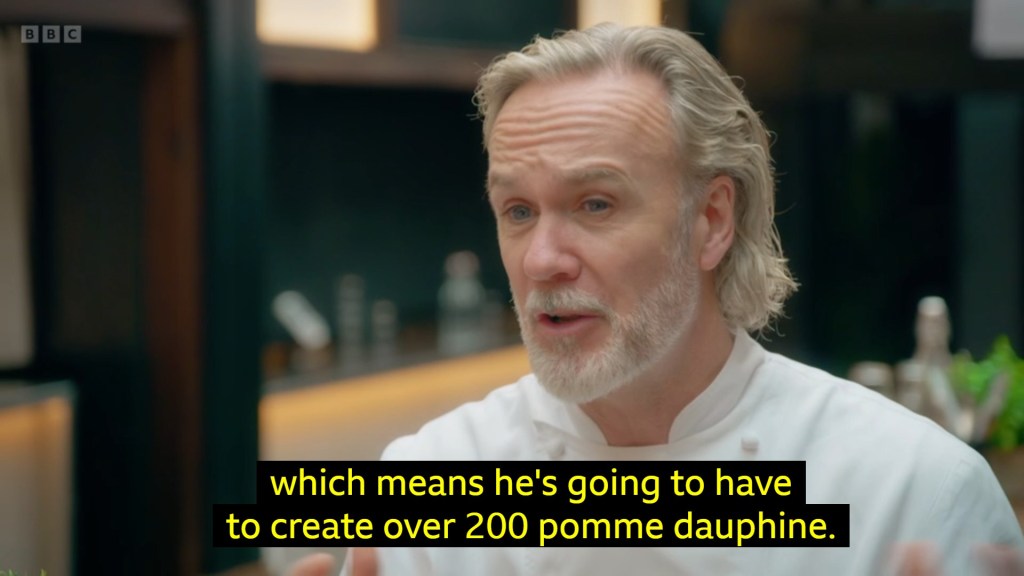 I think it’s a very clever dish and one he can certainly be proud of and should keep in his arsenal going forward but who amongst us when given the chance to queue for any iteration of cheesy chips or the pea custard tart is choosing the tart? DON’T ANSWER THAT, I don’t want to be wrong.