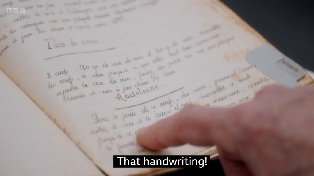 the story behind it all is really sweet and the 100 year old family recipe book is a fascinating personal relic that she could ride all the way to the bank on this show – also, I’m glad her grandmother’s handwriting went fully appreciated